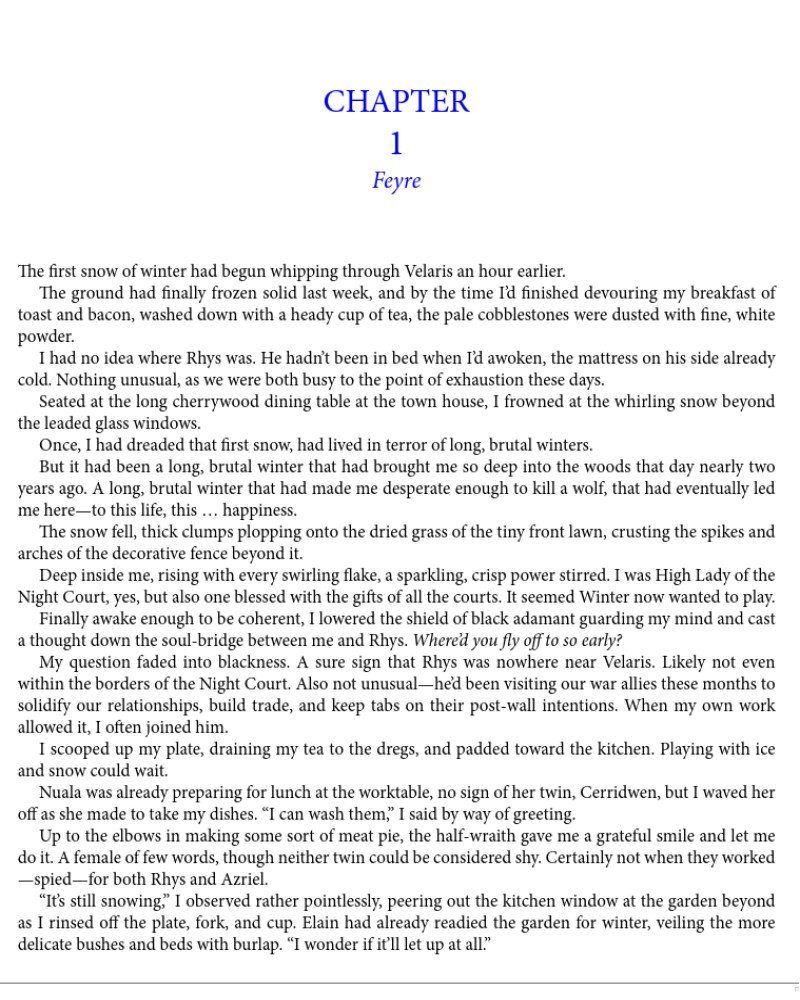 Feyre, Rhysand, and their friends are still busy rebuilding the Night Court and the vastly altered world beyond, recovering from the war that changed everything. But Winter Solstice is finally approaching, and with it, the joy of a hard-earned reprieve.