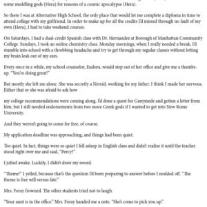 Percy Jackson, now a high school senior, needs three recommendation letters from the Greek gods in order to get into New Rome University.